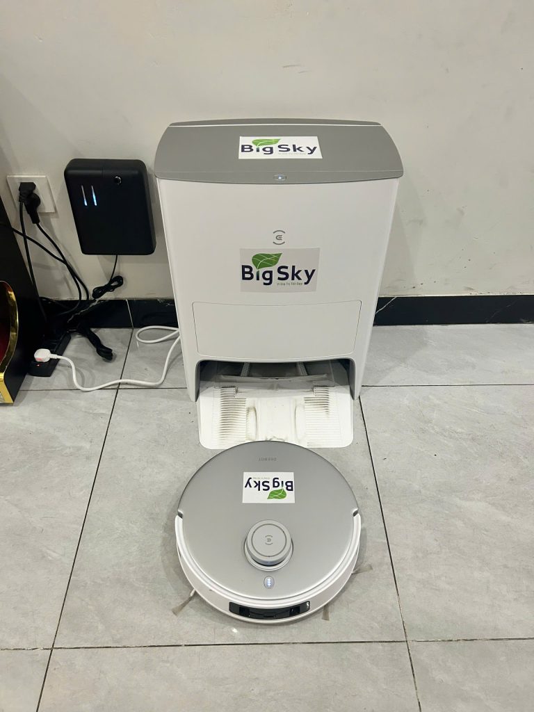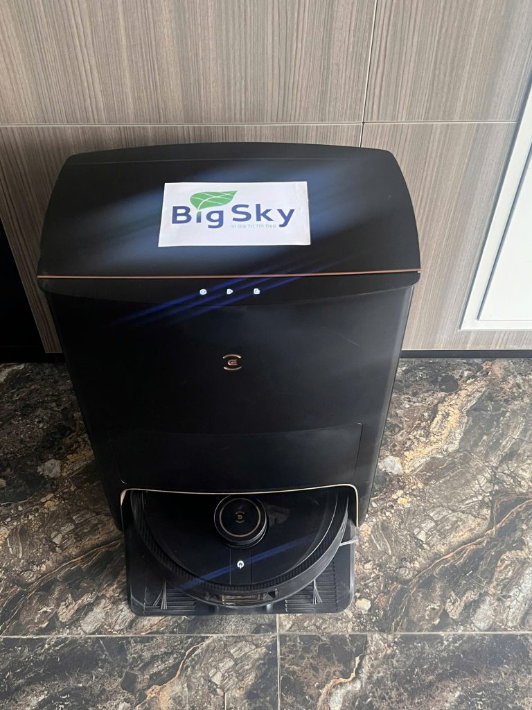 Slogan “Big Sky – Vị Giá Trị Tốt Đẹp” được dán trang trọng trên mỗi thiết bị như một lời cam kết về chất lượng dịch vụ tận tâm. Chúng tôi tin rằng, việc tiên phong áp dụng công nghệ robot chính là bước đi quan trọng để tạo ra môi trường sống xanh – sạch – thông minh cho mọi khách hàng.